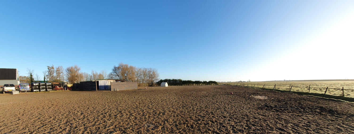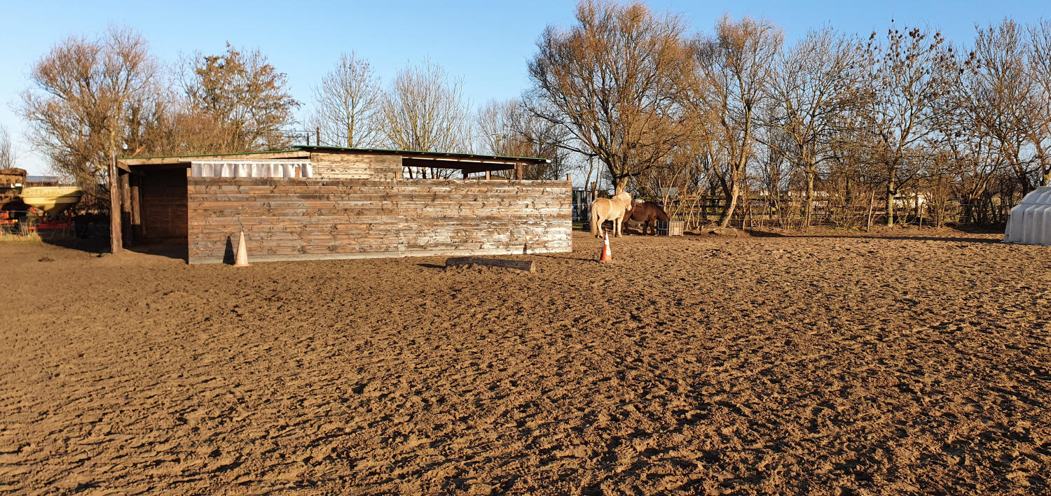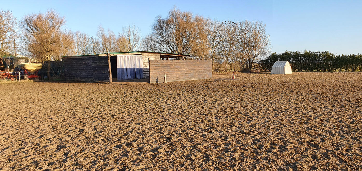 de kleine paddock is 20x15 meter en de grote paddock is 100x50 meter.