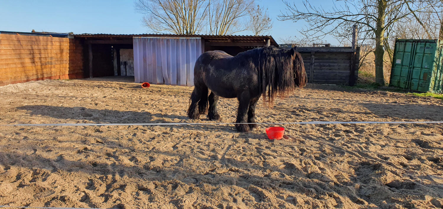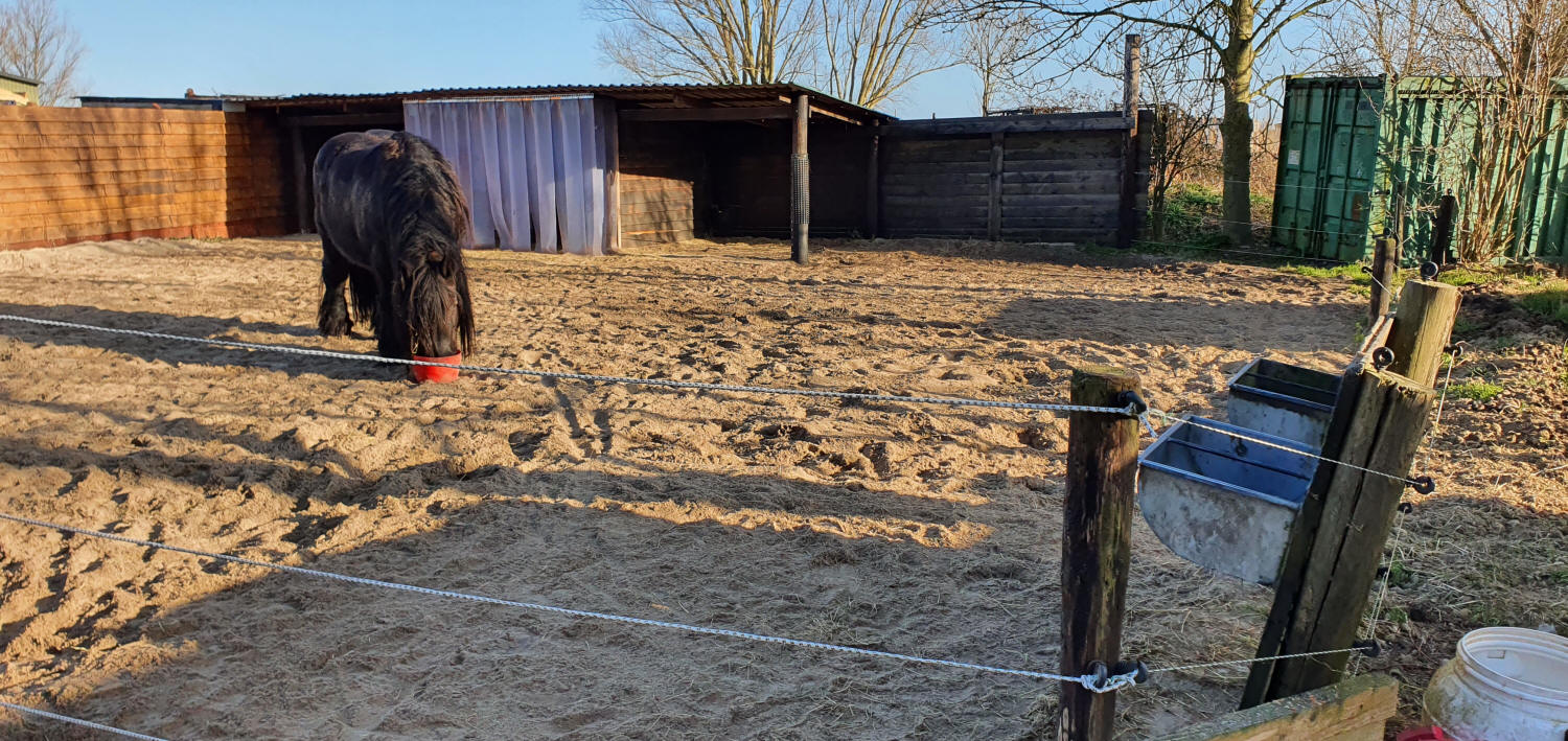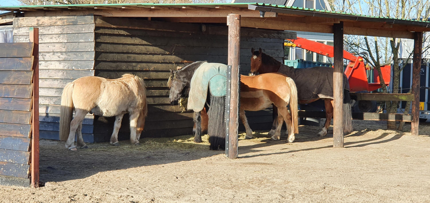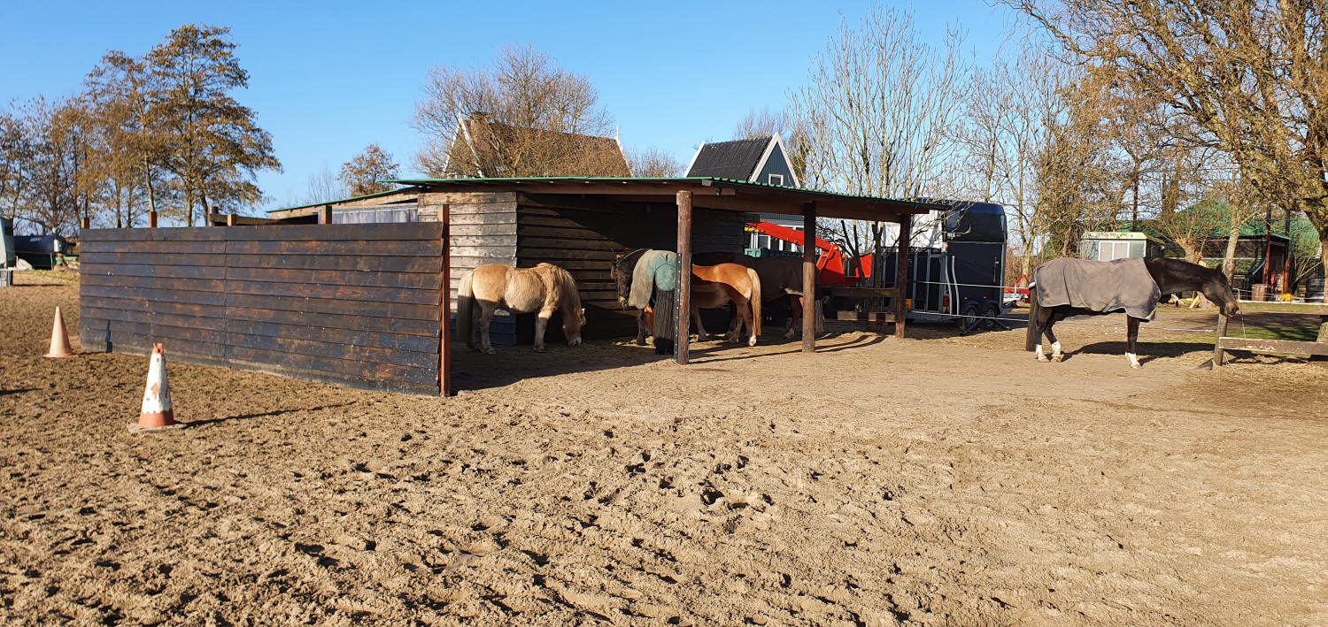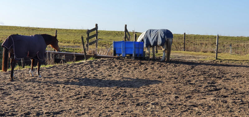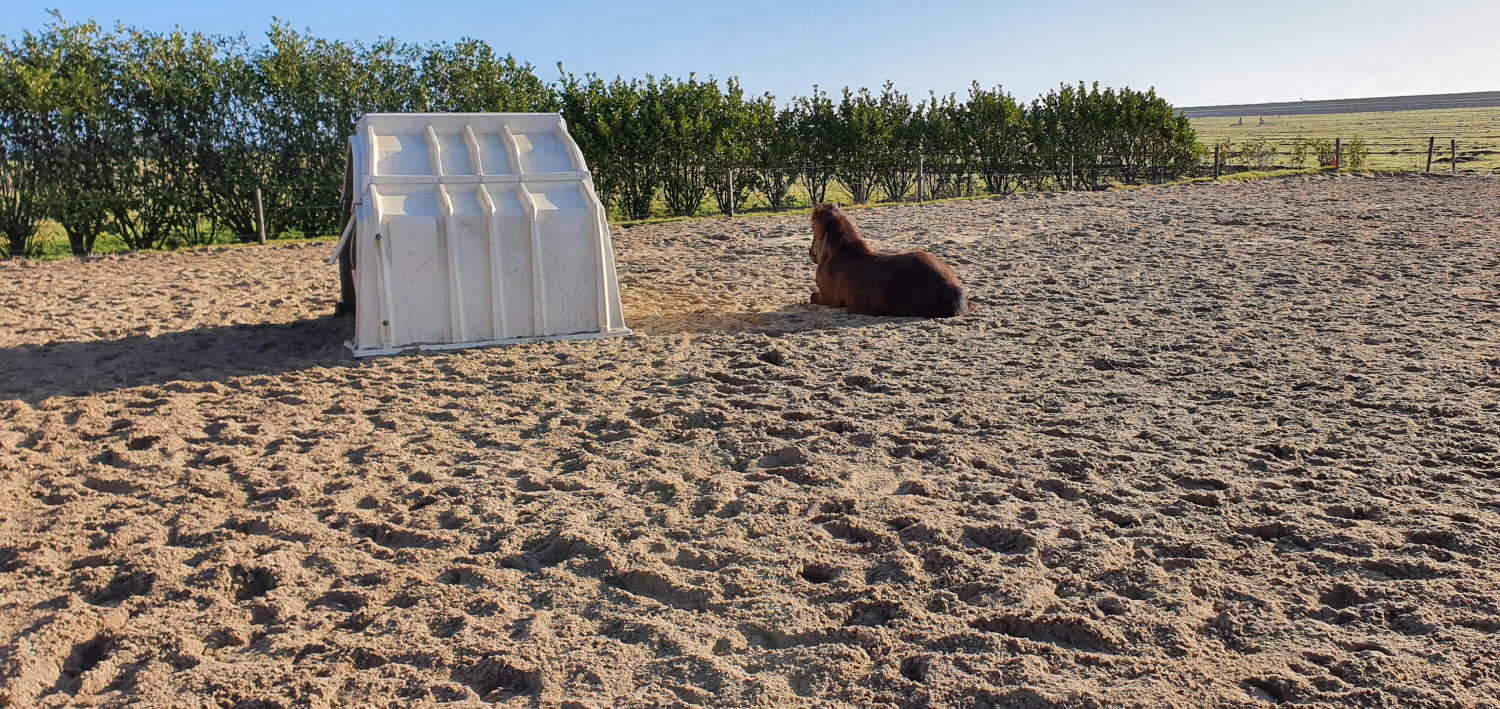 De grote paddock wordt in de zomer als springweide gebruikt.